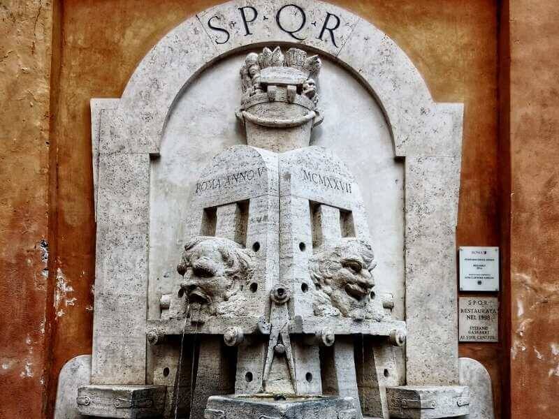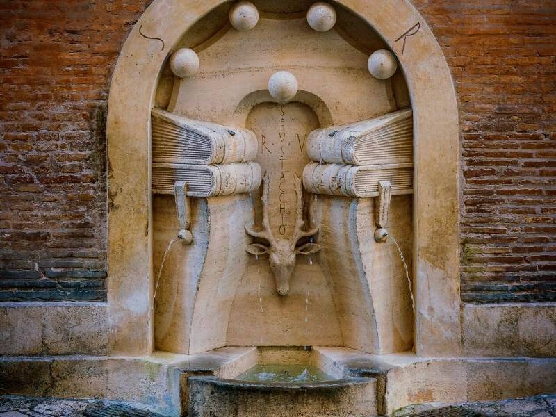 Der Brunnen der Bücher, errichtet zu Ehren der Universität von Sapienza, zeigt einen Bogen mit der Inschrift "SPQR" und ein Symbol des Stadtviertels. Die Bücher symbolisieren das italienische Staatsarchiv und machen diesen Brunnen zu einem wichtigen kulturellen Vermächtnis Roms.