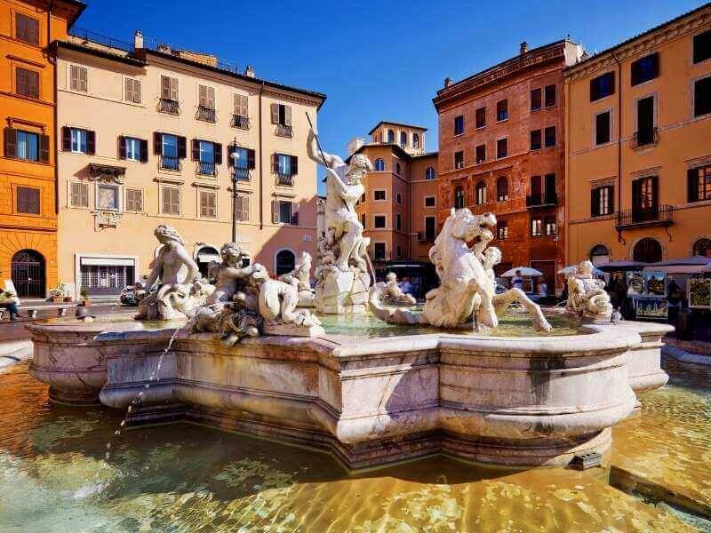 Der Mohrenbrunnen, ein Pendant zum Neptunbrunnen, wurde im 16. Jahrhundert erbaut und später von Bernini verfeinert. Mit Tritonen und einem äthiopischen Mann, der mit einem Delfin kämpft, ist er ein eindrucksvolles Beispiel für römische Kunst und Geschichte.